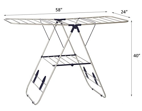 LONGER & WIDER SIZE than most gullwing drying rack (Dimension: 58"L x 24"W x 40"H), 24 linear drying feet, more drying space for outdoor use and more purchasing value