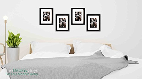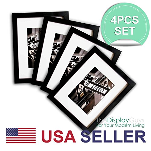 The Display Guys~ 4 Sets 11x14 Sets Matte Black Solid Pine Wood Photo Frame, Tempered Glass, Luxury Made Affordable, with White Core Mat Boards for 8x10 Picture + Collage Mat Boards for 2-5x7 Pictures