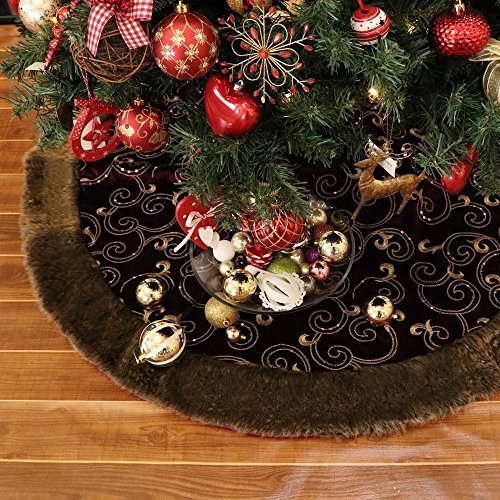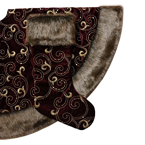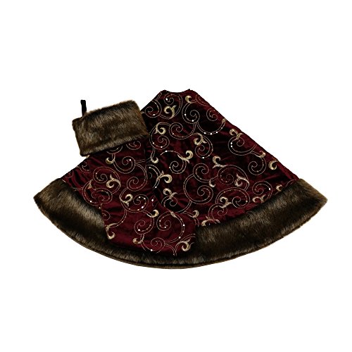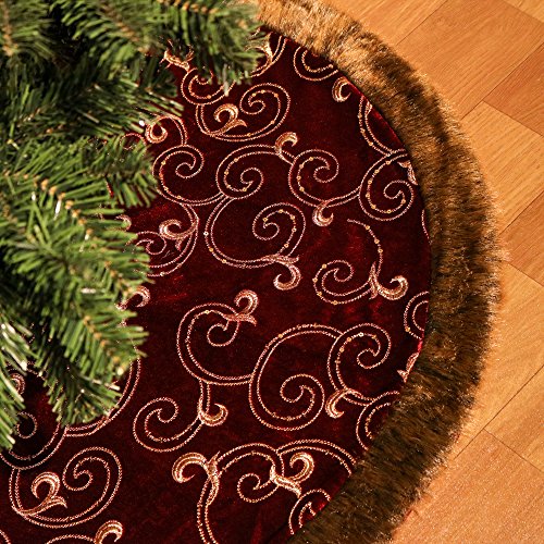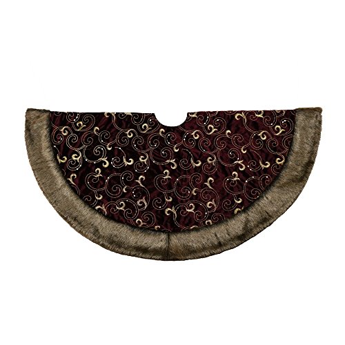 Valery Madelyn 48" Luxury Collection Burgundy and Gold Christmas Tree Skirt,Themed with Christmas Ornament(Not Included)