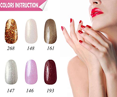 Gellen Environmental Gel Nail Polish, 6 Shimmering Sparkle Colors Set