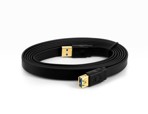 USB 3.0 Premium Flat Extension Cable, Am to a Female, Black, 9 Ft.