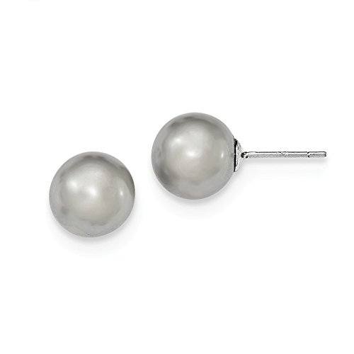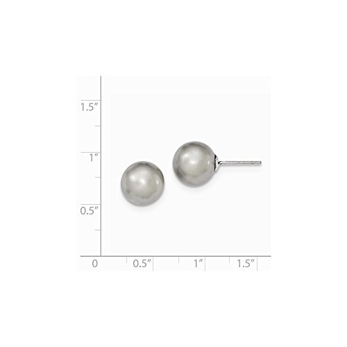 Solid 925 Sterling Silver 10-11mm Grey FW Cultured Round Simulated Pearl Stud Earrings