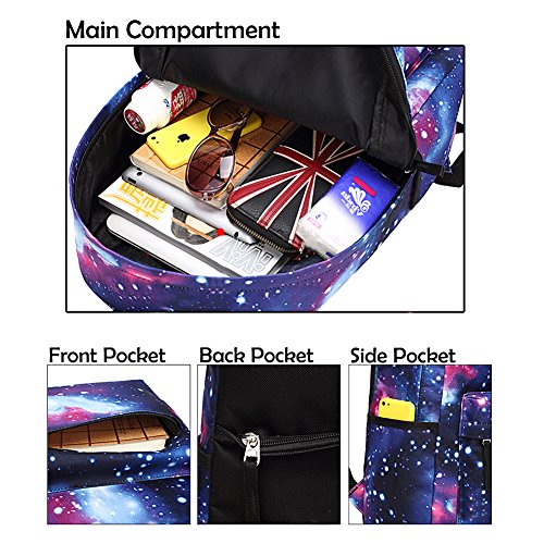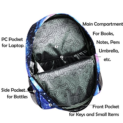 Main compartment: roomy for big items, such as books, clothes, trousers Laptop compartment: can place tablet PC and 15 inch laptop Front compartment: pockets on the front for phone, pen etc Side mesh pockets£ºwith buckle closure for water bottle and umbrella Dimensions:17.7 x 11.8 x 5.5 inch (L*H*W) / 45 x 30 x 14 cm(L*H*W) Fabric: Water Resistant nylon Weight:1.54 Lbs/0.7kg