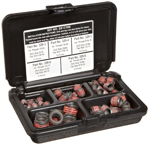 E-Z Lok Threaded Inserts For Metal; Assortment Kit; Carbon Steel; Heavy Wall; UNC Internal Threads, 10-24, 1/4-20, 5/16-18, 3/8-16, 1/2-13; 46 pieces
