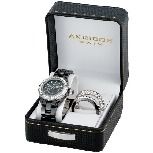 Three interchangeable silver tone crystal, baguette, and ceramic bezels