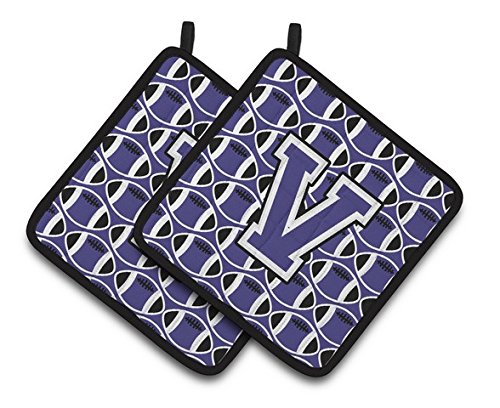 Caroline's Treasures CJ1068-VPTHD Letter V Football Pot Holders (1 Pair), 7.5" x 7.5", Purple/White