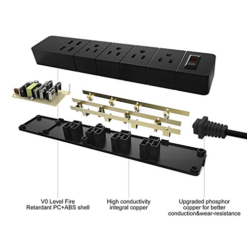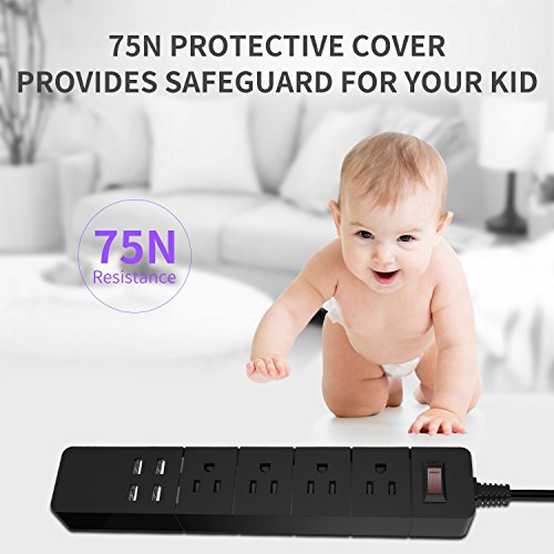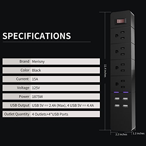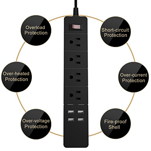 ETL Certified. Built-in 15A circuit-breaker keep appliances safe, while MultiProtect safety system shields USB devices from short circuits, surges and more. Specifications: Material: V0 Level Fire-resistance PC ABS shell, PVC copper cord Rated Voltage: 125V Rated Current: 15A Rated Power:1875W Charger Input: 100-240V 50-60Hz USB Output: 1 USB 5V == 2.4A (Max), 4 USB 5V == 4.4A Outlet Quantity: 4 AC Outlets 4 USB Ports Operating Temperature: -50℉-104℉ Certifications: FCC ETL Dimensions: 11.4*2.2*1.2 inches Weight: 1.3 lb What You Will Get: