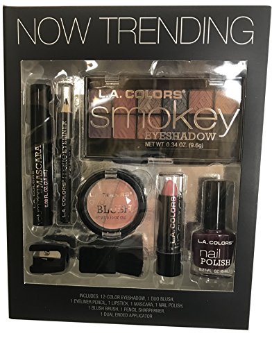 -. Title : L.A. Colors Now Trending Beauty Makeup Kit, Includes 12-Color Eyeshadow Palette, 1 Duo Blush, 1 Black Eyeliner Pencil, 1 Nail Polish, 1 Brush, 1 Lipstick, 1 Pencil Sharpener, 1 Mascara, Great Gift