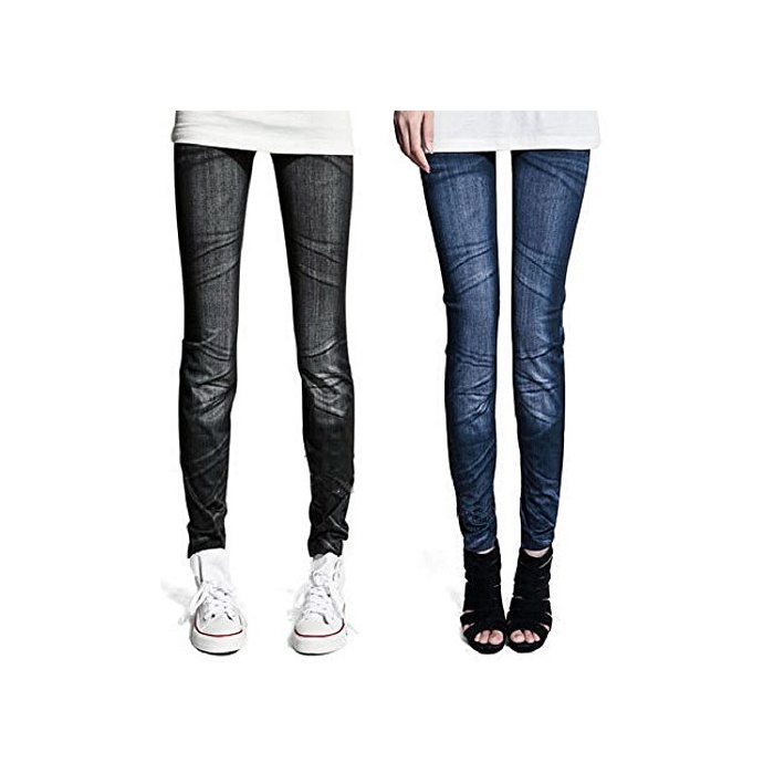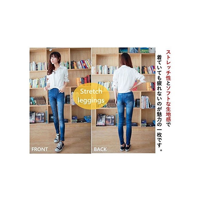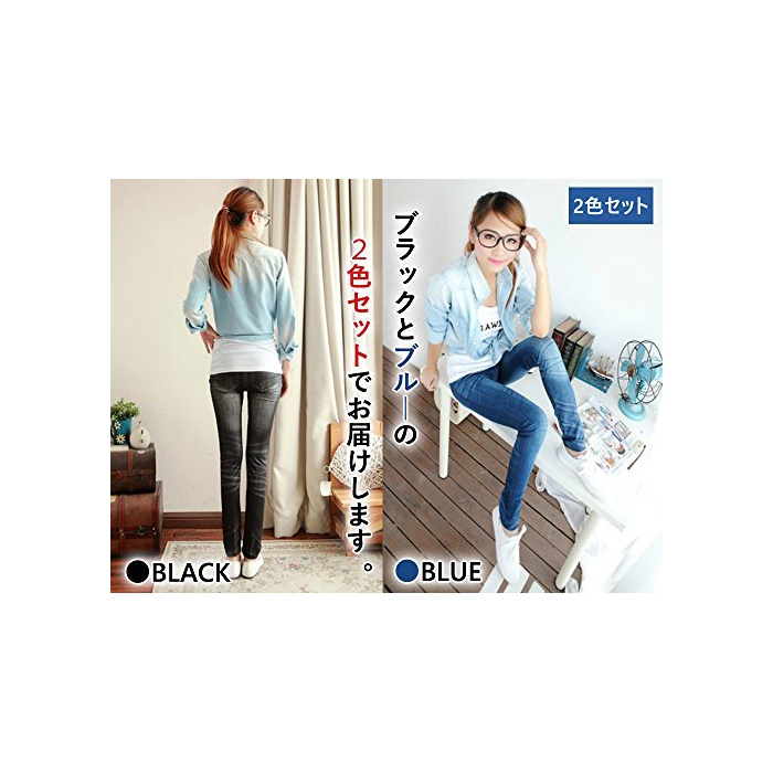 원본상품명: 伸縮 ストレッチ 素材 デニム 風 レギンス 美脚 スキニ タイプ ブラック ブル 2色 セット (シワ柄)