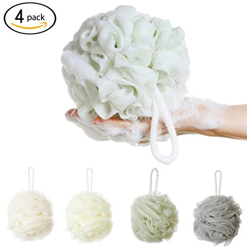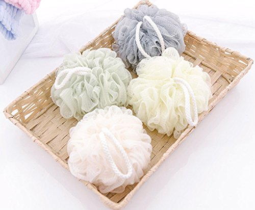 MEETFUN 4Pcs/Set Large Size Bath Sponge Mesh Pouf Rich Bubbles Environmental PE Soft Shower Loofah Flower (4)