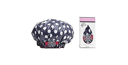 Dry Divas Designer Shower Cap For Women - Washable, Reusable - Large Bouffant Cap With Vintage Jeweled Brooch (Lotza Dotza)