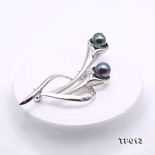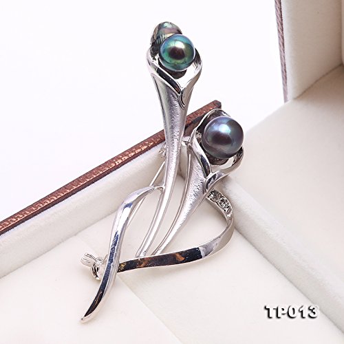 Description *Exquisite 8-9mm dyed peacock-green freshwater pearl brooch with fashionable design.