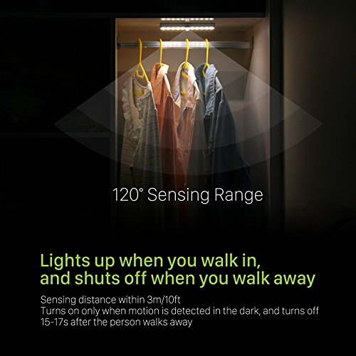 AUTOMATIC SENSOR: This motion sensing closet light is auto-on within 10 ft, auto-off after 12-18 seconds of no motion detected. It will turn on only when it is Dark and when motion is detected