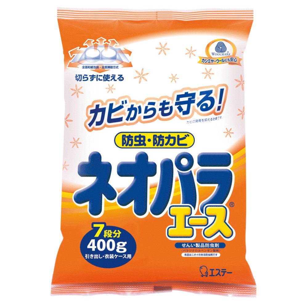 "Neopara Ace Drawer · 400 g for Costume Case" is an insect repellent (for clothing) that can be easily reworked with special Washi Packaging.