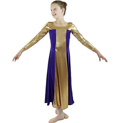 Danzcue Girls Metallic Color Block Long Sleeve Praise Dance Dress