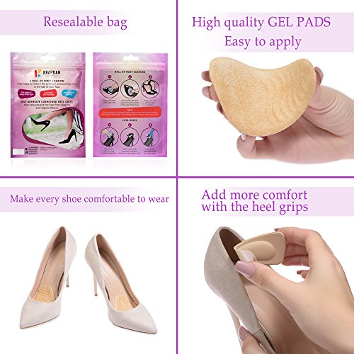 Studio : Kraftian Publisher : Kraftian Binding : Health and Beauty Product Description Upgrade all your shoes comfort level with Kraftian premium ball of foot pads and heel grips! Provide's support for Mortons neuroma, metatarsalgia, calluses and bunions. The metatarsal inserts are discreet for women sandals and high heels and adding the gel ball of foot cushion too all types of shoes will improve comfort and support