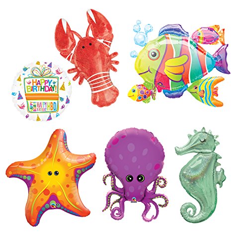 -. Feature : (1) 30" Tropical Cluster Fish Foil Balloon / (1) 33" Star Fish Foil Balloon / (1) 35" Octopus Foil Balloon / (1) 38" Holographic Seahorse Foil Balloon / (1) 39" Lobster Foil Balloon and (1) Happy B-Day Present Balloon