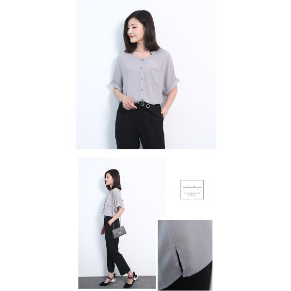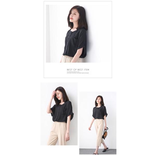 ポケット付ドルマンブラウス レディース トップス 半袖 無地 2017 新作涼しげなシフォン素材のシャツブラウスは夏コーデにぴったり♪