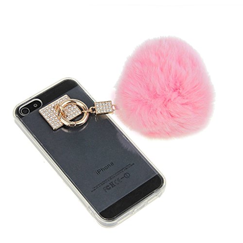 BXT Womens Girls Rhinestone Transparent Lifeproof Phone Otterbox Case Cover with Plush Fur Ball Pendant for Iphone 5 Iphone 5S Iphone SE