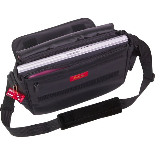 - Feature : Features actual pulp magazine images from the 40's and 50's / Equipped with SafetyCell laptop protection / Built with opposing hook and loop tape straps to allow for over-stuffing / Built-in cell phone and interior zippered pockets for organization / Adjustable shoulder strap with removable velveteen cushioned pad