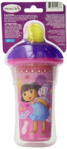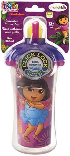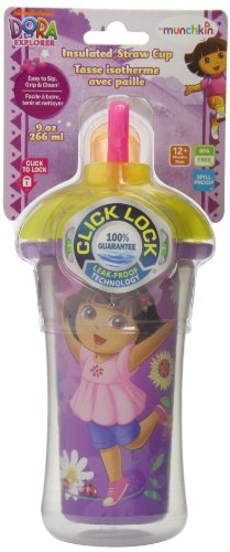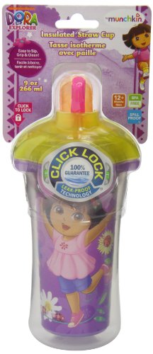 -. Binding : Baby Product -. Brand : Munchkin -. Color : Multicolor -. Department : baby-boys -. EAN : 0735282154683 -. Feature : Click Lock leak proof technology you can see, feel and hear / Soft, flexible straw is leak proof in the open and closed position / Insulated for cooler, fresher drinks clear outer with tinted inner cup so mom can see fill level / Top rack dishwasher safe, BPA free / Ships in assorted designs -. Label : Munchkin -. LegalDisclaimer : IN NO EVENT, REGARDLESS OF CAUSE, SHALL JUVENILE OUTLET BE LIABLE FOR ANY INDIRECT, SPECIAL, INCIDENTAL, PUNITIVE OR CONSEQUENTIAL DAMAGES OF ANY KIND,WHETHER ARISING UNDER BREACH OF CONTRACT, TORT (INCLUDING NEGLIGENCE), STRICT LIABILITY OR OTHERWISE, AND WHETHER BASED ON THIS AGREEMENT OR OTHERWISE, EVEN IF ADVISED OF THE POSSIBILITY OF SUCH DAMAGES. -. Manufacturer : Munchkin -. Model : 15468 -. MPN : 735282154683 -. NumberOfItems : 4 -. PackageQuantity : 1 -. PartNumber : 735282154683 -. ProductGroup : Baby Product -. ProductTypeName : BABY_PRODUCT -. Publisher : Munchkin -. ReleaseDate : 2012-02-08 -. Size : 9 Ounce -. Studio : Munchkin -. Title : Munchkin Dora the Explorer Click Lock Insulated Straw Cup, 9 Ounce (Colors may vary) -. UPC : 735282154683