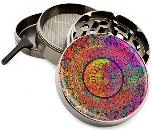 Rainbow Mandala Herb Grinder 4 Part Premium Quality Grinders Made from Zinc Titanium 2.5" Wide Diamond Grind 4 Piece Grinder - Gift Box