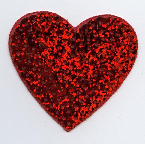-. Title : Valentine Large 2" Red Sequin Heart Iron on Embroidered Patch