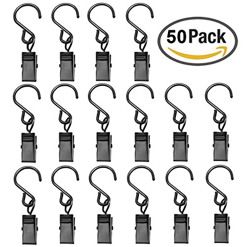 Esfun 50 Pack Black Curtain Clips - String Party Light Hooks Hanger Clips for Outdoor Indoor Party Awning Lights Hanging