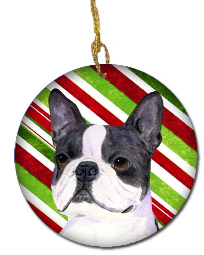 Caroline's Treasures SS4585-CO1 Boston Terrier Candy Cane Holiday Christmas Ceramic Ornament, Multicolor
