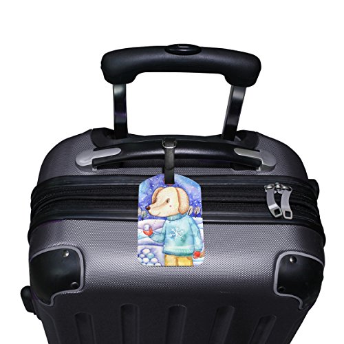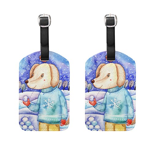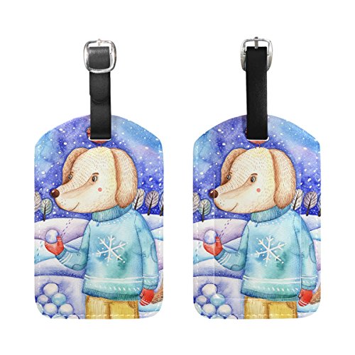 (My Little Nest)/Accessories/Luggage, Bags Travel/DIRECT FROM USA/Travel Luggage Tag Watercolor Dog Play Snowballs PU Leather Baggage Suitcase Tag Name Address I...