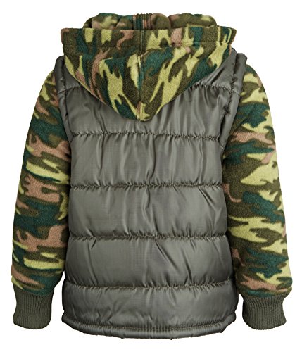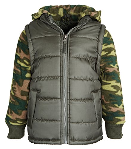 IXTREME LITTLE BOYS DOWN FEEL VEST LOOK PUFFER JACKET WITH FLEECE CAMO SLEEVES - OLIVE (SIZE 2T)