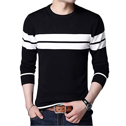 -. Title : チーアンTiann メンズ セーター ニット 綿 Uネック クルーネック ボーダー柄 長袖 保温 カジュアル 春秋冬