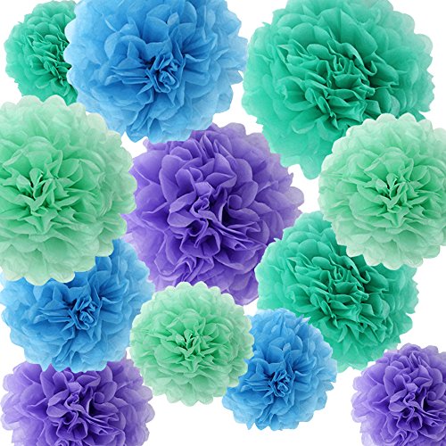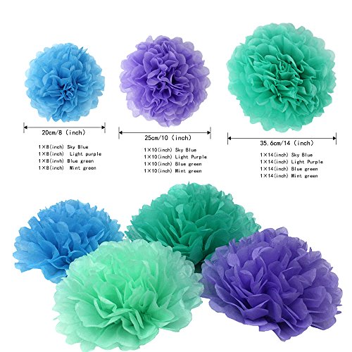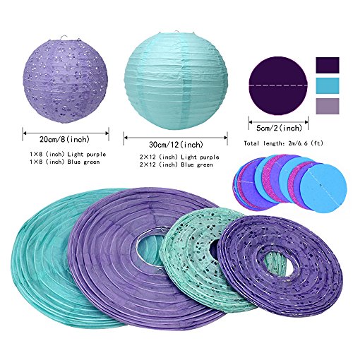 - Package includes: 12 paper pom poms (8", 10", 14"), 4 paper lanterns (8", 12"), 2 hollow paper lanterns (8"), 1 polka dot paper garland (total length 2m/6.6ft), and 15 balloons.