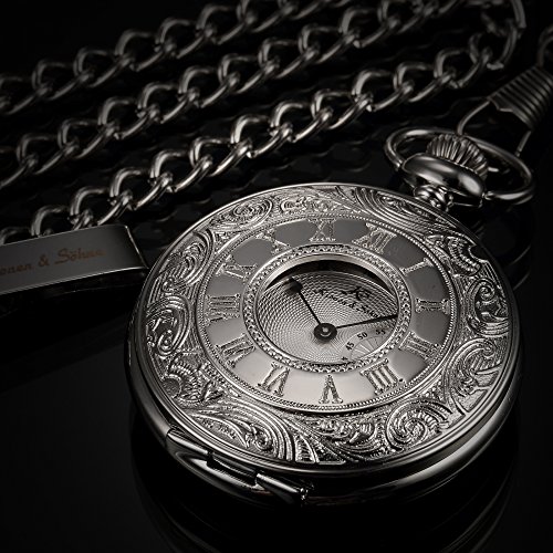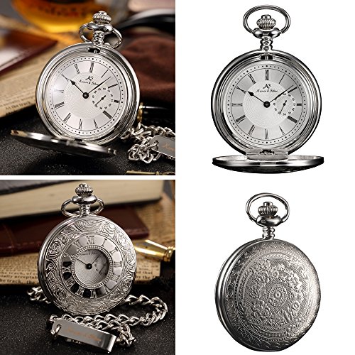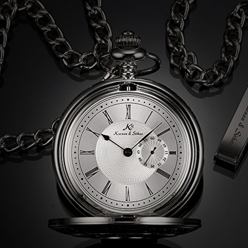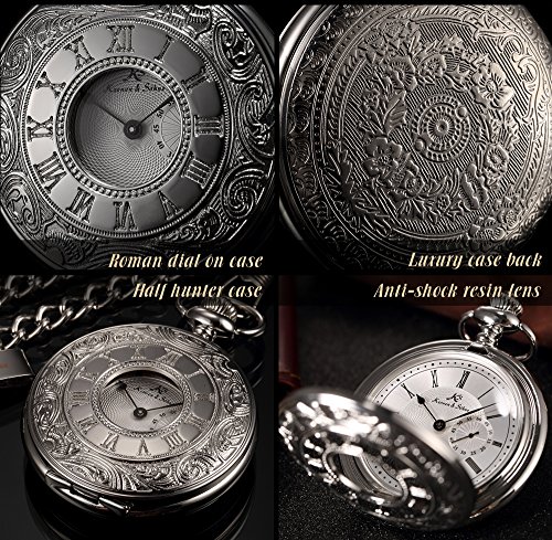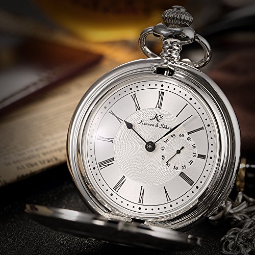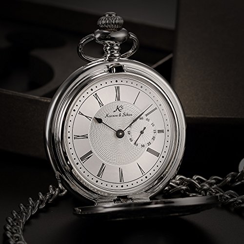 Ks K 에스 KS 헌터 스팀 펑크 호로 앤틱 실버 케이스 로마숫자 맨즈 일본제 쿼츠 회중 시계 KSP016
