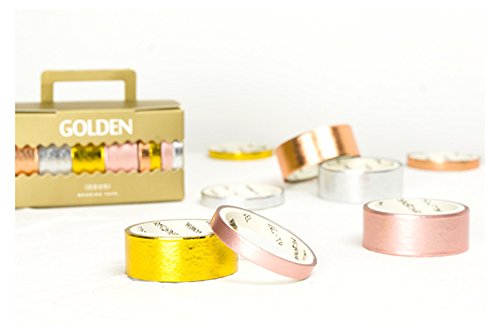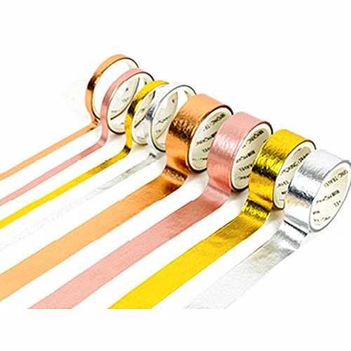 UNIQOOO Arts & Crafts Washi Masking Tape Set of 8 Rolls, Metallic Foil Gold Silver Rose Gold, Perfect for Crafting DIY,Gift Wrapping, Scrapbook,Bullet Journal Planner Decoration