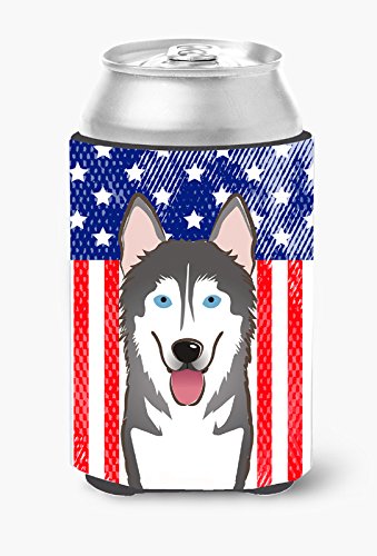Caroline's Treasures BB2148CC American Flag And Alaskan Malamute Can Or Bottle Hugger, Multicolor