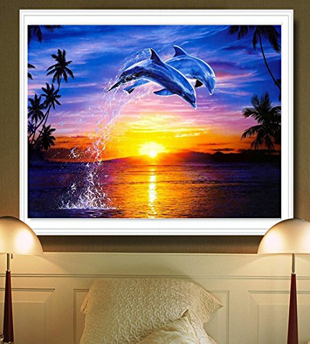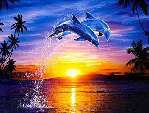 21secret 5D Diamond Diy Painting Full Round Drill Handmade Two Happy Dolphin Jumping Out Sea Sunset Cross Stitch Home Decor Embroidery Kit