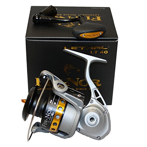 -. Title : Fin-Nor LT60 Lethal Spinning Reel, 240-Yards, 14-Pound Mono Line Capacity, 30-Pound Maximum Drag, Gray and Black Finish