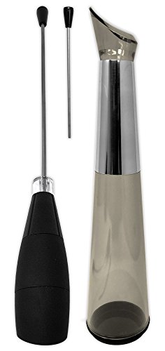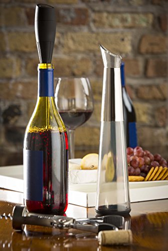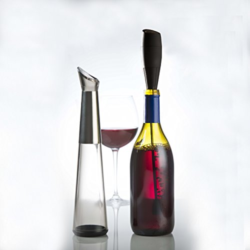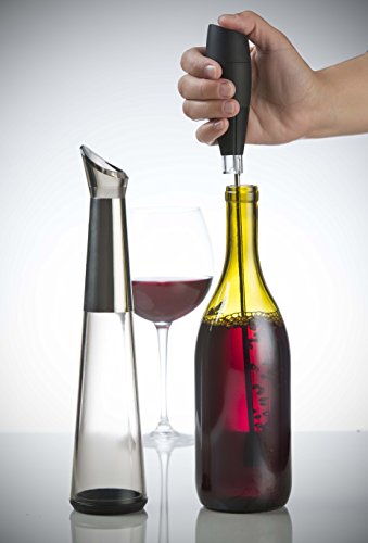 -. Brand : Assortit -. Color : Black -. EAN : 0750253815592 -. Feature : Quickly aerates a full bottle or single glass of wine in 30 seconds / Designed to enhance the true flavors, texture and enjoyment of your wine / 2 piece set includes a full-bottle aerator and slim, decorative stand / One-touch button operation makes aerating your wine fast and effortless / Ultra-modern black design with stainless steel chrome accents -. Label : Modern Home -. Manufacturer : Modern Home -. ProductGroup : Kitchen -. ProductTypeName : KITCHEN -. Publisher : Modern Home -. Studio : Modern Home -. Title : Electric Wine Aerator Pourer - Premium Aerating Pourer and Decanter Spout (Black) -. UPC : 750253815592