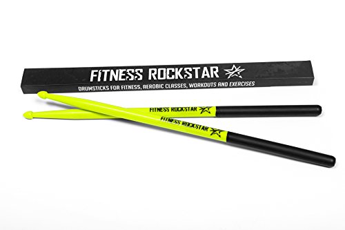 High-Grade Plastic FITNESS ROCKSTAR Drumsticks for Fitness, Aerobic Classes, Workouts and Exercises • ANTI-SLIP Handles • Green Pair