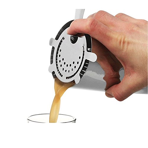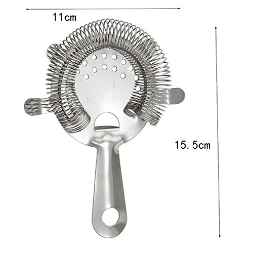 -. Feature : This strainer features 4 prongs for stability , ensuring picture perfect cocktails every time. 100 tight coiled springs fits snug in shaker and holds back ice allowing only liquid to pass so you can get a clean, crowd-pleasing pour. / A strainer used to prevent ice and fruit pouring into the mixed drinks. / A useful tool for bartender when making cocktail and mixed drinks in the bar. / It is a bar accessory used to remove ice from a mixed drink as it is poured into the serving glass. Strains ice, muddled fruit , herbs and more for smooth cocktails. / Made of high quality stainless steel, durable in use.