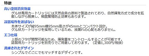 캔 탕 공기 아름다움.치형항균 소취 제.전원 있지 않아.두는 것 뿐(만,만큼)으로 항균 소취 를 할 수 있습니다.4다다미 미만의 공간에서 항균 소취 를 할 수 있습니다.기온25도에서 약30일(날) 지속합니다.(차내 등80℃이상의 경우는 소모가 빨리 됩니다)각종 바이러스 잡균을 제거합니다.※모든 바이러스균에 대응 하고 있는 것 가(이) 아닙니다.※내용(항균 겔)가 작아지면 교환(별매힐 환카트리지)주십시오.