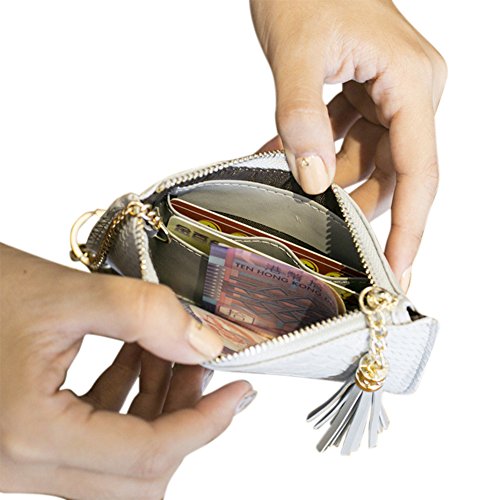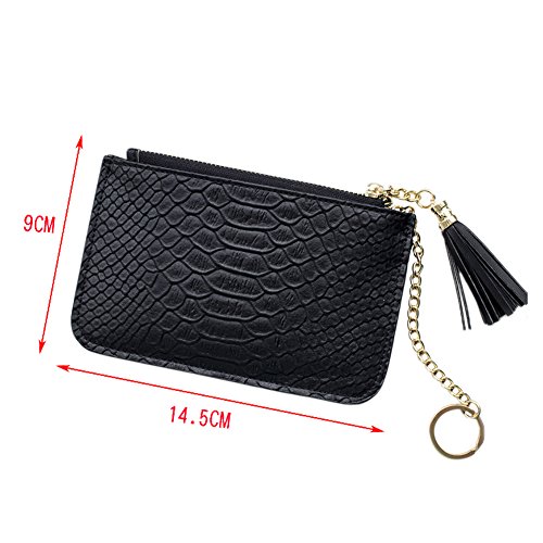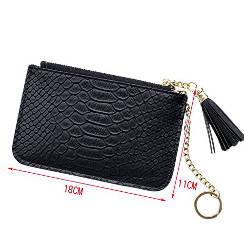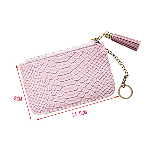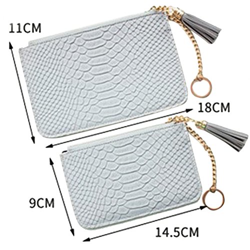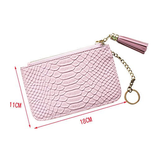 -. Feature : Material: Made of PU Leather + Polyester Lining, High Quality, Soft touch and Durable. / Pattern: Small and Cute Style, Snake skin Pattern Leather Texture£¬Tassel Pendant, Candy color and Zipper closure Purse. / Structure: The wallet is composed of Zipper Coin Pocket, Card Slots and Cash Slot. / Dimension: 14.5cm*9cm*1cm (Small)/18cm*11cm*1cm(Medium), easy to carry and suitable for holding cash, coins, cards and other little things. / Application: A handheld Clutch Purse for Casual, Travel, School, Shopping, Office etc.