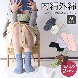 日本製 冷えとり靴下内絹外綿ソックス2足セット。
