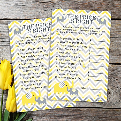 Yellow Elephant Baby Shower - The Price is Right Game Cards (20 Count)