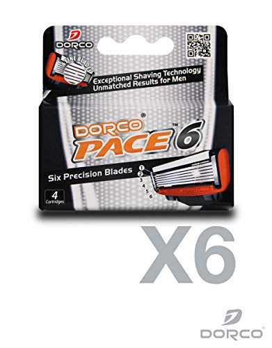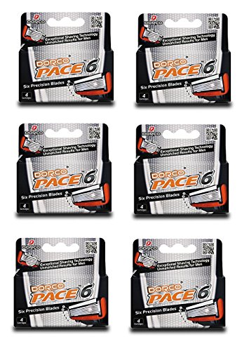 DORCO PACE 6- SIX BLADE RAZOR SYSTEM REFILL CARTRIDGE - 4 COUNT, PACK OF 6 (NO HANDLE, 24 CARTRIDGES)