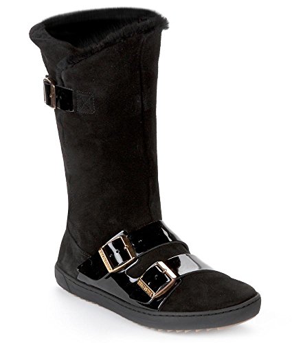 Studio : Birkenstock Publisher : Birkenstock Product Description Look chic in comfortable suede boots with lamb lining, 9.5' shaft height and 1' non-slip rubber outsole. Comfort feature: Arch support and shock absorbing sole, Medium width. Signature staple adjustable patent leather buckles Birkenstock, Style Number: 402071. 0
