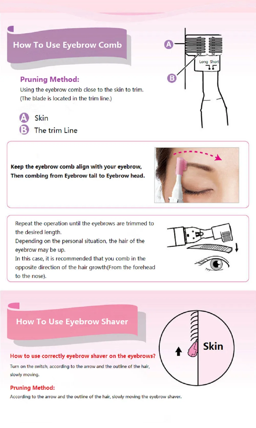 Design for shaving body hair like eyebrow, ear, hair, arms, legs and redundant hair.