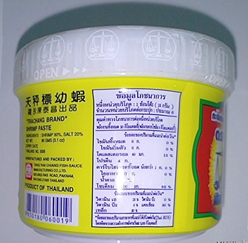 -. Binding : Misc. -. Brand : Tra Chang -. EAN : 4861843147798 -. Feature : In Thailand shrimp paste (Kapi) is an essential ingredient in many types of Nam phrik. / Product from Thailand. / Safety and high quality. / Delicious. -. ProductGroup : Grocery -. ProductTypeName : GROCERY -. Title : Shrimp Paste - Tra Chang (90g.)