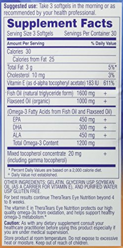 -. Feature : The omega-3s in TheraTears Nutrition come from organically grown cold-pressed lignan-free flaxseed oil, and premium molecularly-distilled (mercury-free, PCB-free) fish oil / TheraTears Nutrition